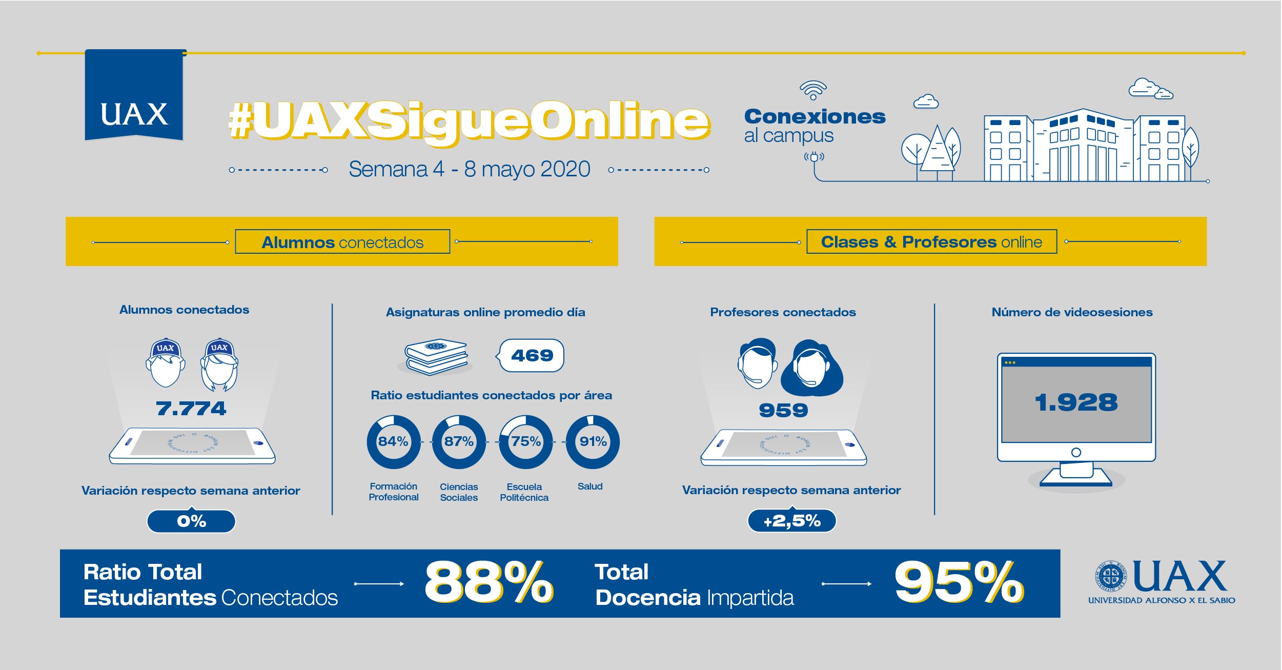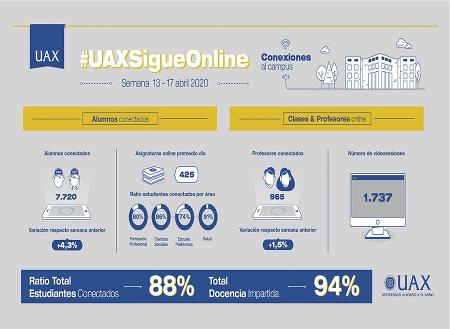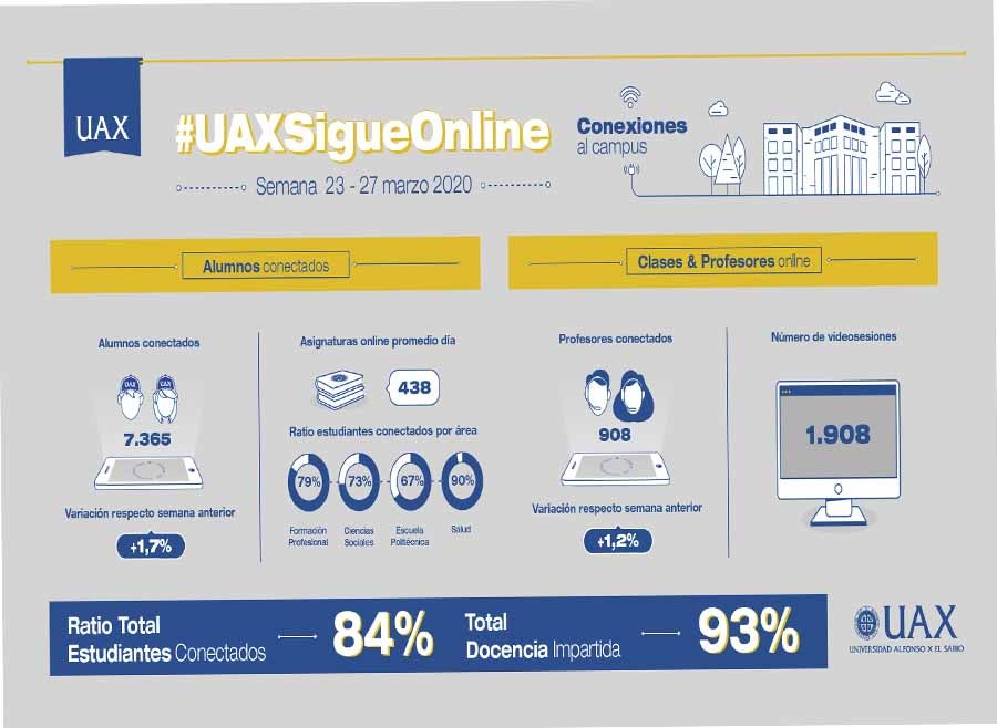 Durante estos meses se ha impartido más del 90% de la docencia y más del 85% de nuestros estudiantes se han conectado para seguir recibiendo una formación de excelencia. Consulta aquí.